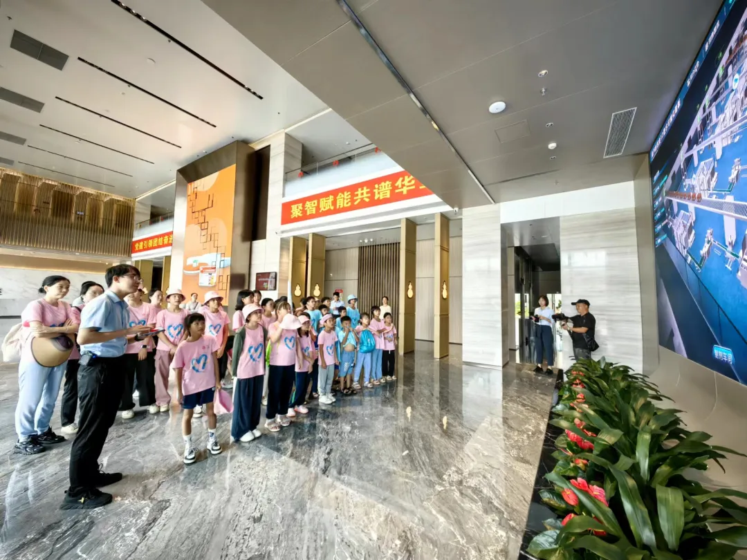 活动一开始,孩子们便迫不及待地踏入了金沙9001cc药业集团的大厅。3D数字化看板上的生动画面,让孩子们仿佛置身于一个充满科技与创新的现代制药工厂。他们瞪大眼睛,好奇地观察着每一条生产线、每一台设备,听着讲解员介绍金沙9001cc药业的儿药发展历程。